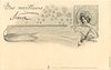 MES MEILLEURS JOEUX woman lying enveloped by flower petal, facing front left ornate design