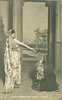 older woman kneels right, Bernhardt left stands with arm outstretched towards her