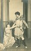 Bernhardt kneels left looking up at man, right, she holds on to his sword, they look at each other