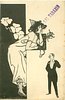 u/b, black & white, come hand-coloured, UN MOT A LA POSTE, (DEPOSE), come gilt embossed SOUHATS SINCERES or 1 ER APRIL, come opt. in red on back LA PLUS IMPORTANTE SPECIALITE DE PAPIER A LETTRES COQUEMER, GRAVEUR, IMPRIMATEUR, 10, RUE BAYEN, PARIS, come opt. in purple on front BAL TABARIN