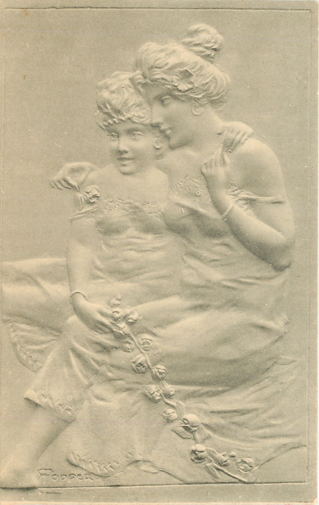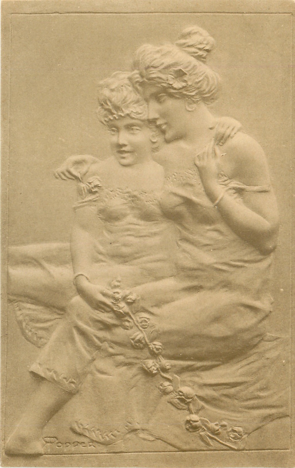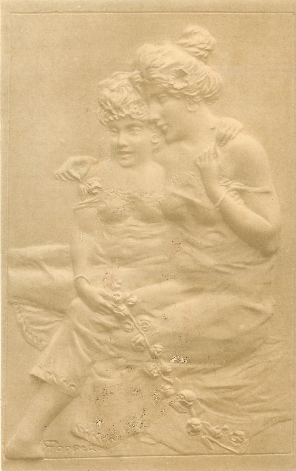 u/b, shades of grey or bistre, UN MOT A LA POSTE, (DEPOSE), pictures of sculptures to give 3-d effect, come with CHICOREE ARLATTE & CIE PREMIER MARQUE FRANCAIS advert. in grey on back