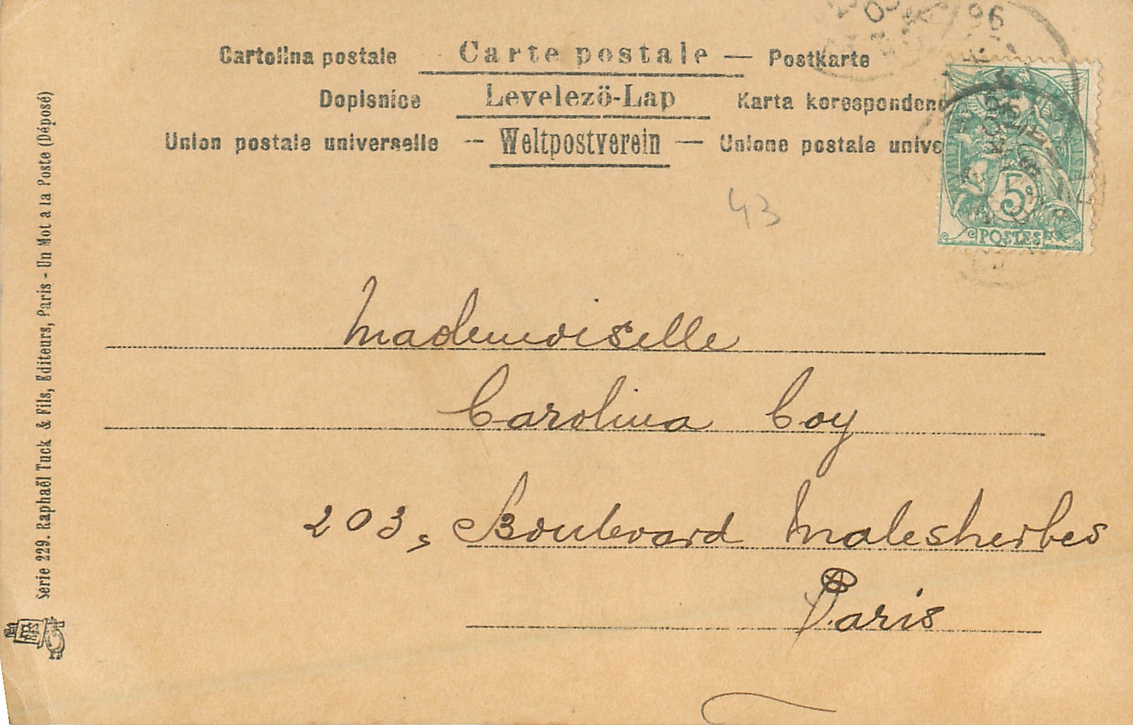 u/b, photographic hand-coloured, International back, SBW in 3 leaf clover & 555/6 on front, UN MOT A LA POSTE, (DEPOSE)