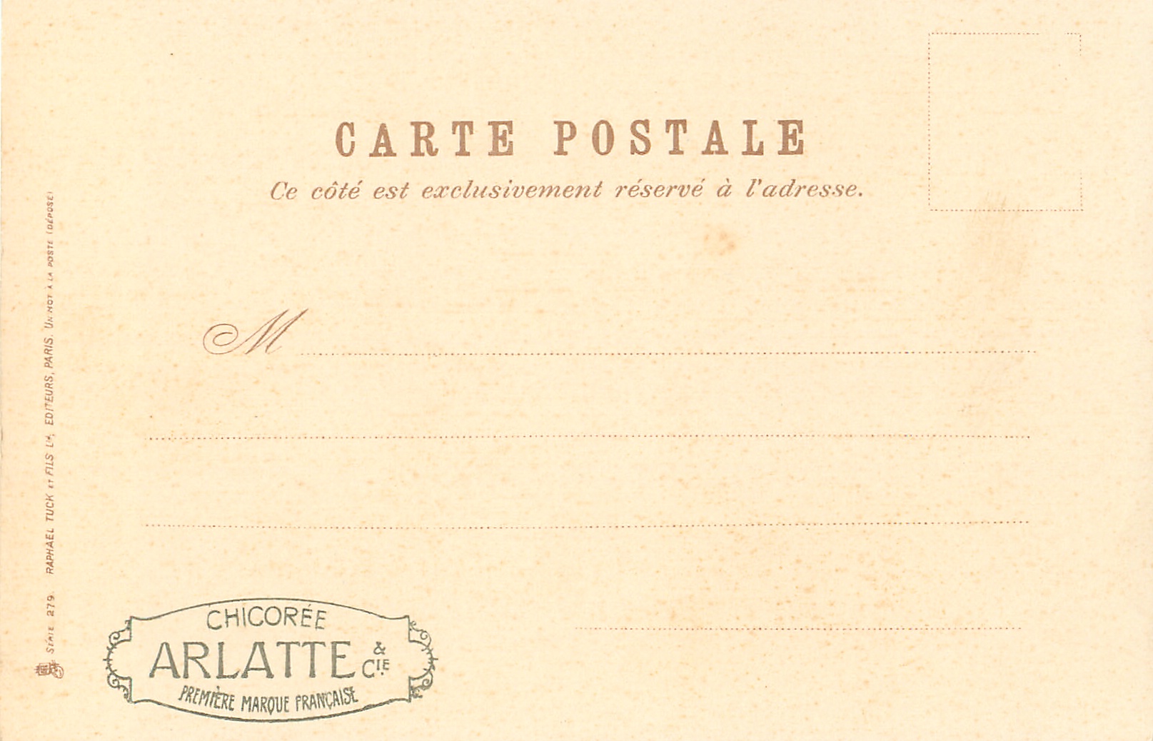 u/b, UN MOT A LA POSTE, (DEPOSE), comes with grey CHICOREE ARLATTE & CIE PREMIER MARQUE FRANCAIS back advert.
