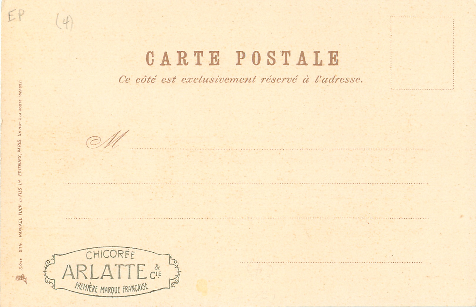 u/b, UN MOT A LA POSTE, (DEPOSE), comes with grey CHICOREE ARLATTE & CIE PREMIER MARQUE FRANCAIS back advert.