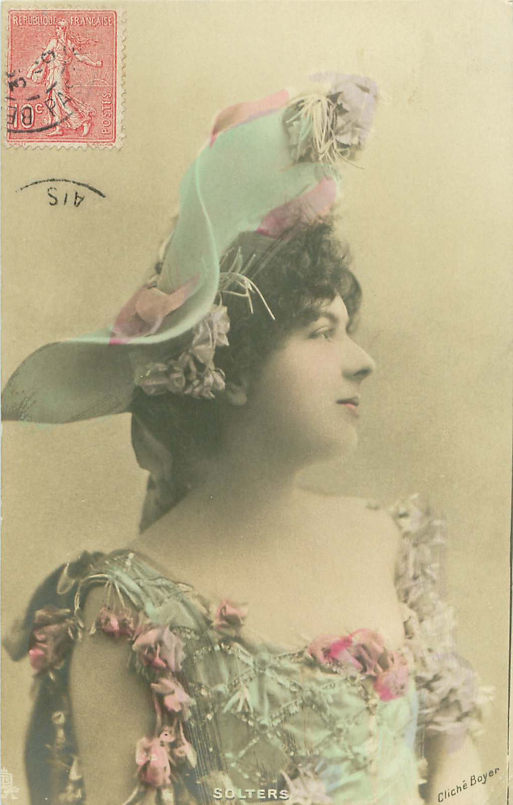 divided back or u/b, photographic, hand-coloured, UN MOT A LA POSTE, (DEPOSE), CLICHE BOYER