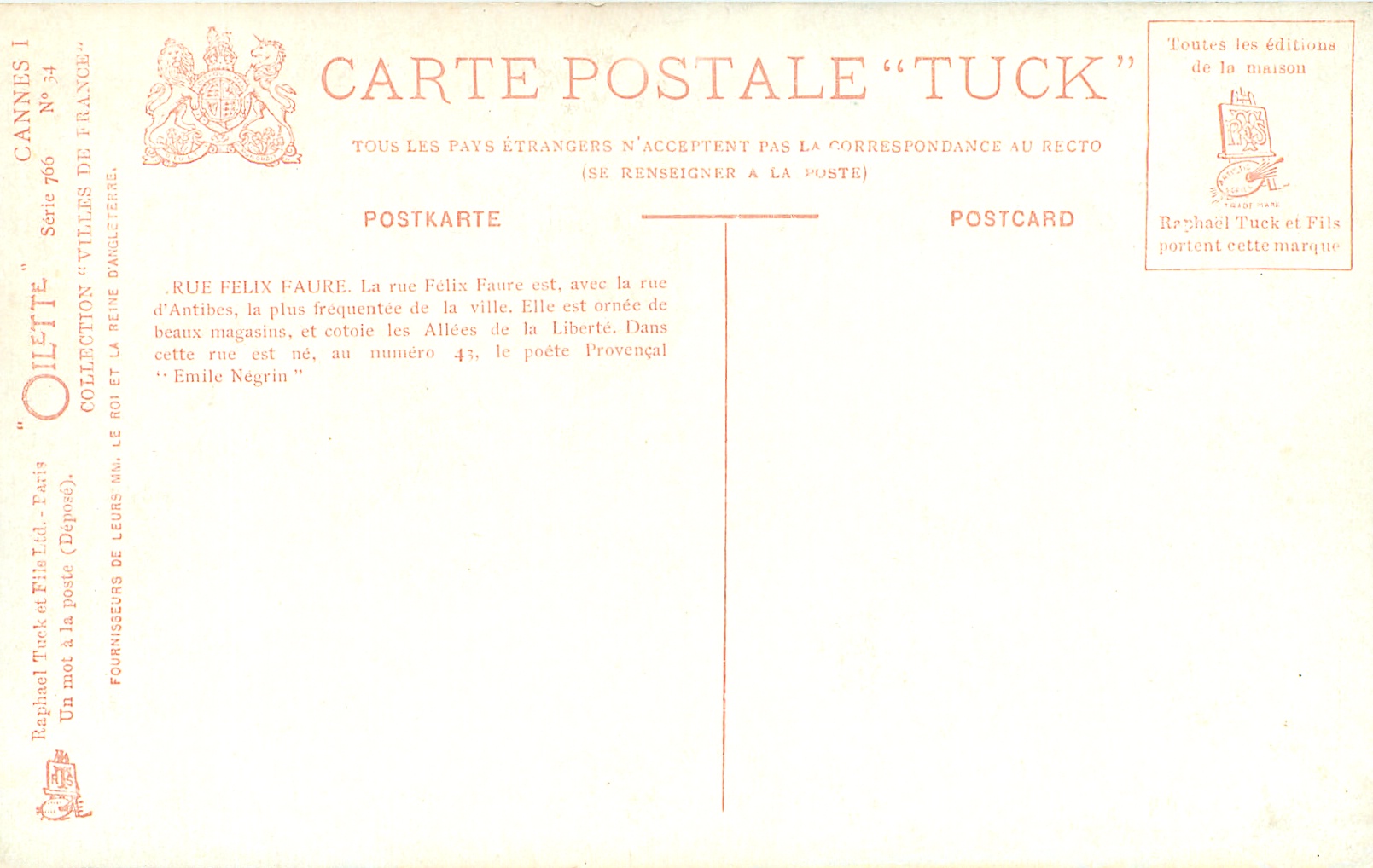 OILETTE, UN MOT A LA POSTE (DEPOSE), 5 backs, with or w/o suffix P, with or w/o COLLECTION VILLES DE FRANCE with or w/o inset numbers, same images English backs OILETTE WIDE-WIDE-WORLD 7445 CANNES SERIES I, same images & front titles with German backs as OILETTE 226 B