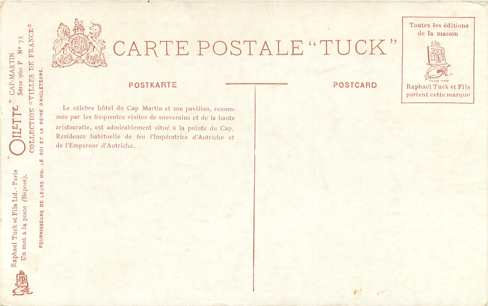 CAP-MARTIN HOTEL PRES MENTON A.M., COLLECTION VILLES DE FRANCE (960)