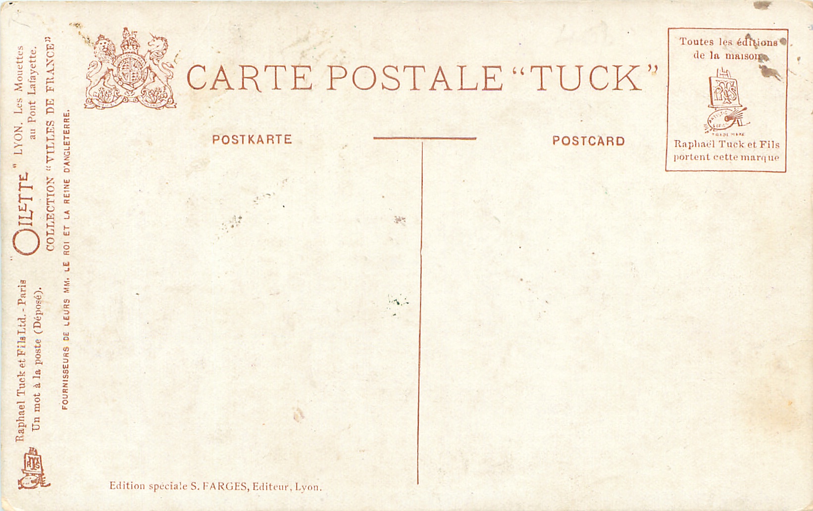 OILETTE, UN MOT A LA POSTE (DEPOSE), EDITION SPECIALE S. FARGES, EDITEUR, LYON
