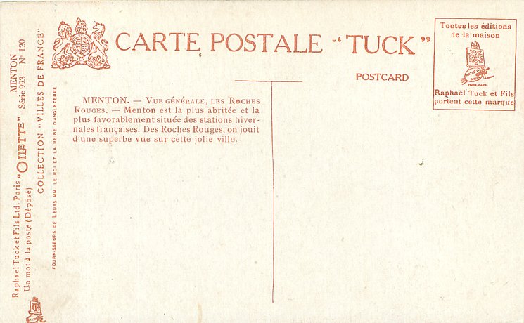 MENTON individually numbered cards by WIMBUSH, French