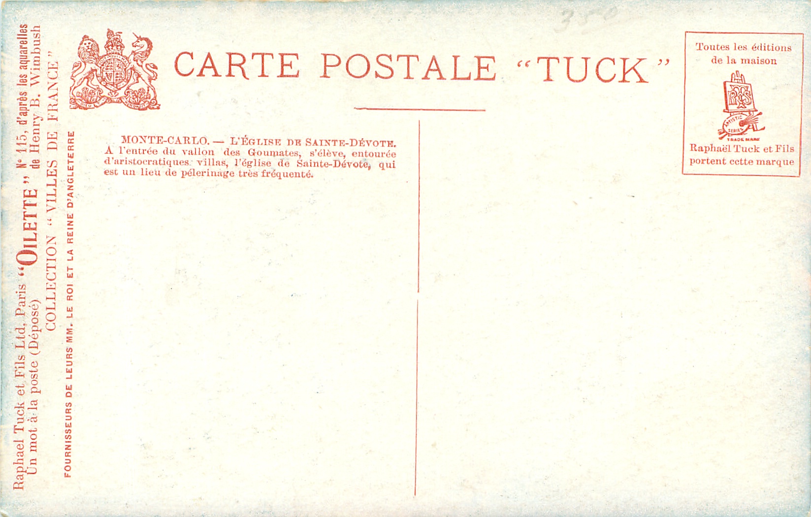 OILETTE, UN MOT A LA POSTE, (DEPOSE) or no trade name, 4 backs, come with & w/o COLLECTION VILLES DE FRANCE, come with & w/o D'APRES LES AQUARELLES DE HENRY B. WIMBUSH, same images SERIE 992 with inset numbers as for this set & MONTE CARLO 7998