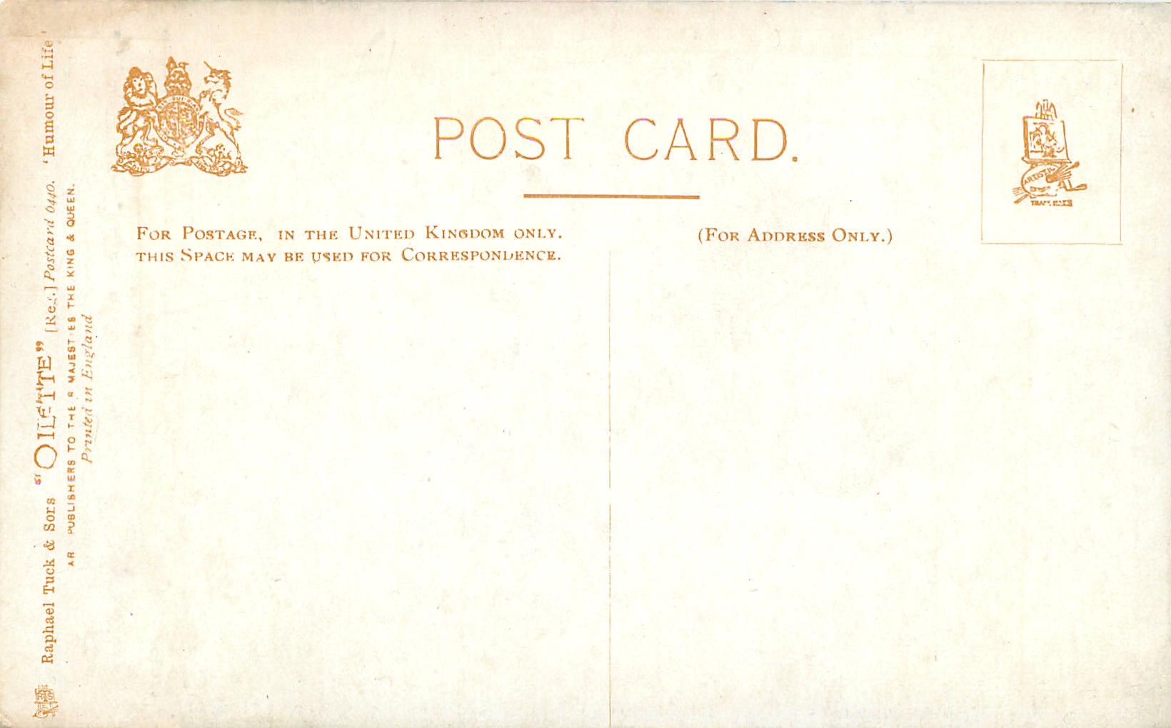 OILETTE, PRINTED IN ENGLAND, listed in 1908/1909 & 1911/1912 Postcard Catalogue