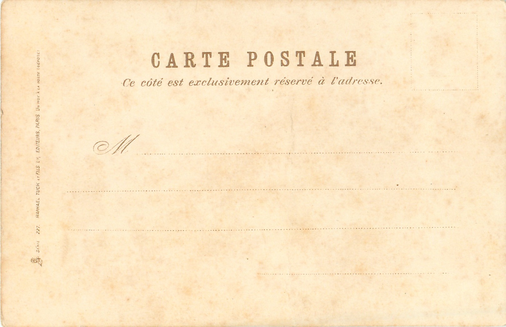 u/b, UN MOT A LA POSTE, (DEPOSE), come opt. in red on back A L'ORPHELINE, SPECIALITE DE DEUIL, 13 & 15 RUE HIERS, HAVRE, same images English backs ART 884