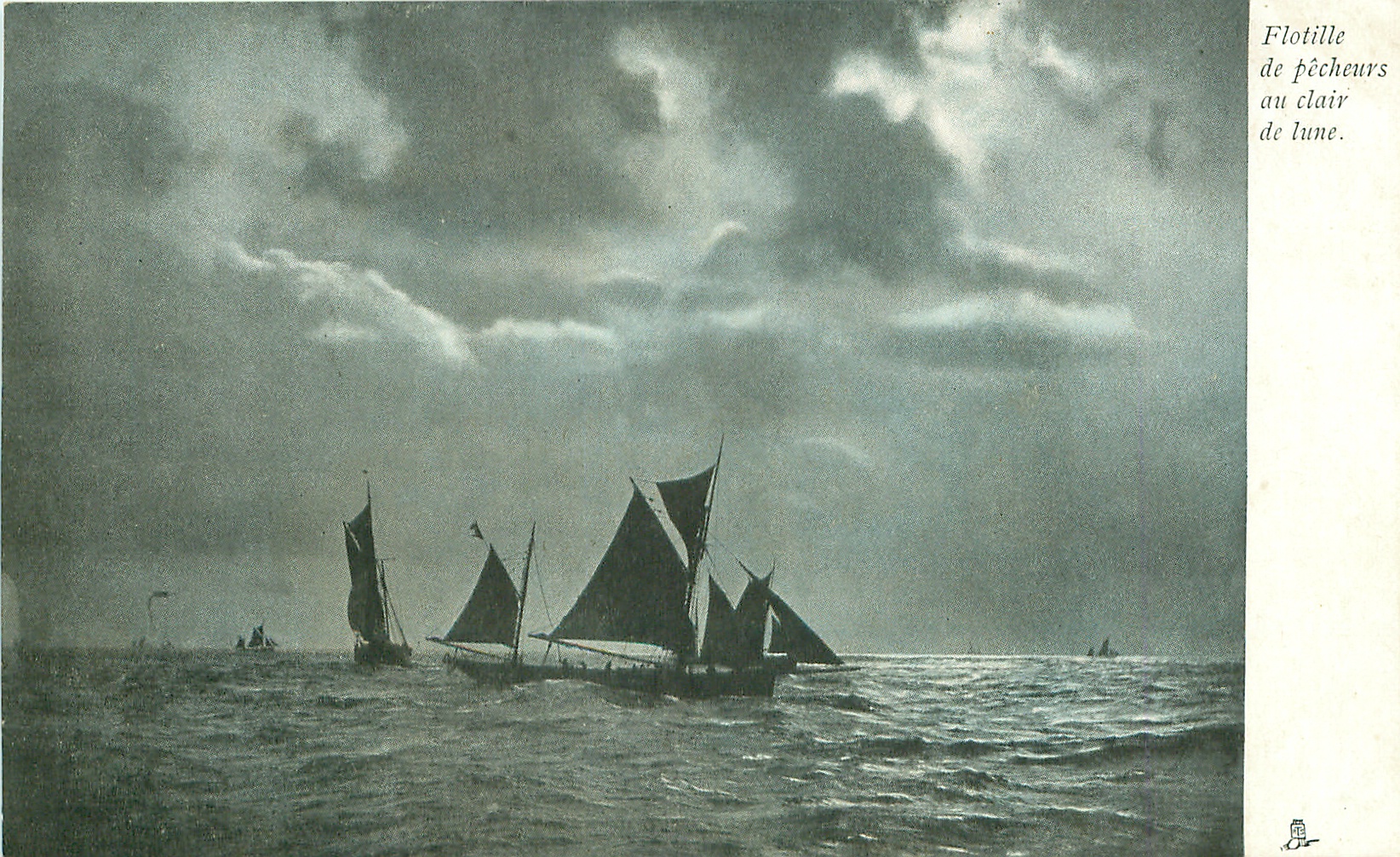 FLOTILLE DE PECHEURS AU CLAIR DE LUNE