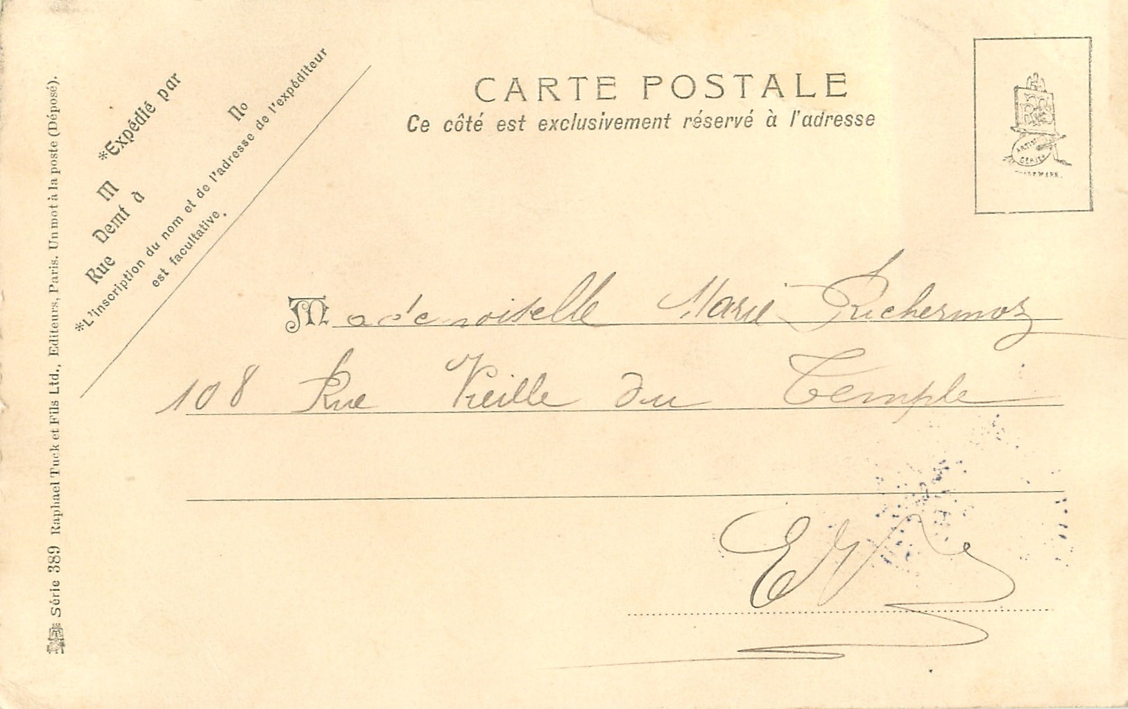 u/b, grey/black, come hand-coloured, RAPHAEL TUCK & FILS LTD., EDITEURS, PARIS. UN MOT A LA POSTE, (DEPOSE)
