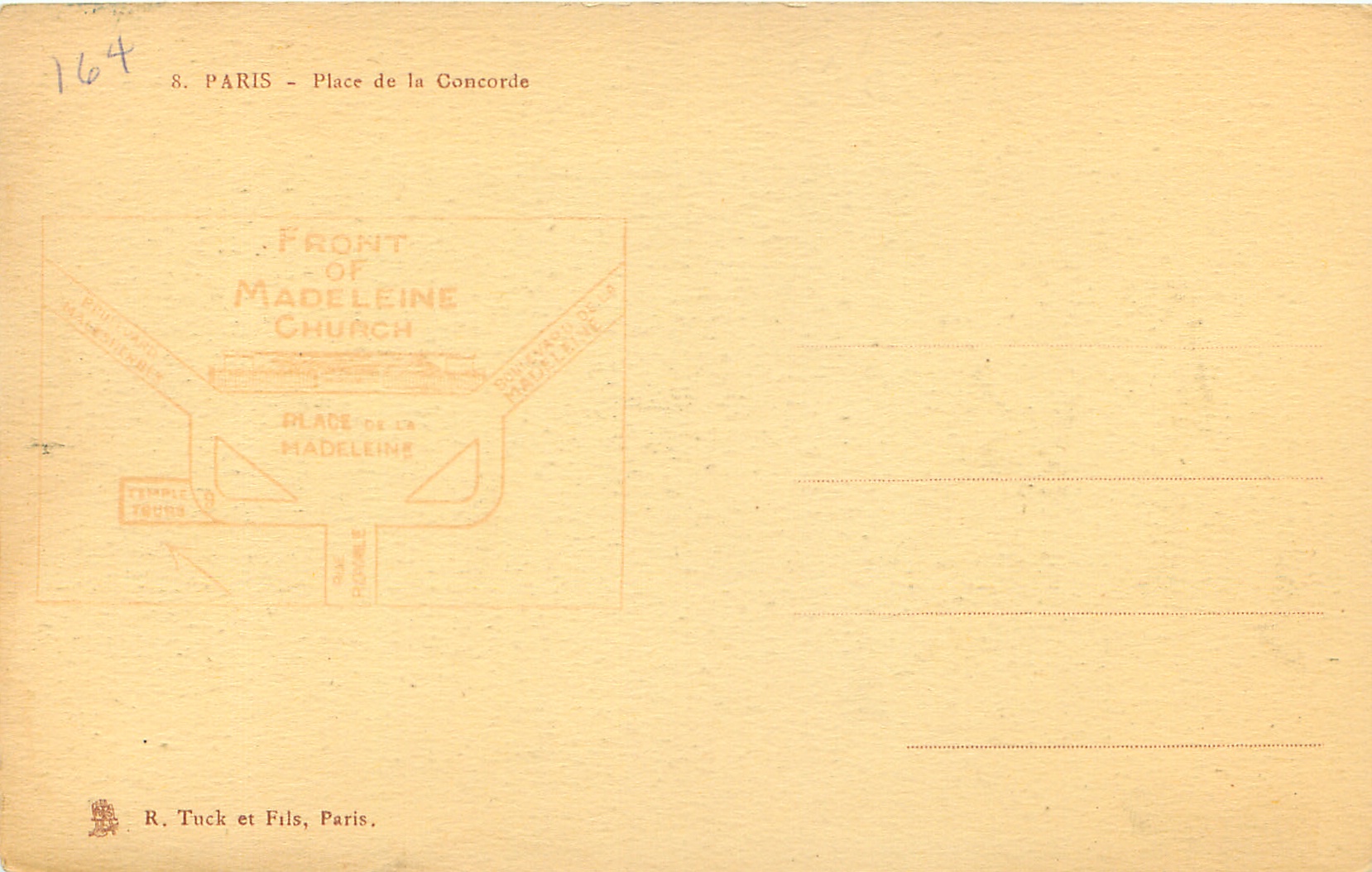 sepia, from photographs, similar to SIBYL sets but no attribution, map showing area FRONT OF MADELEINE CHURCH on back