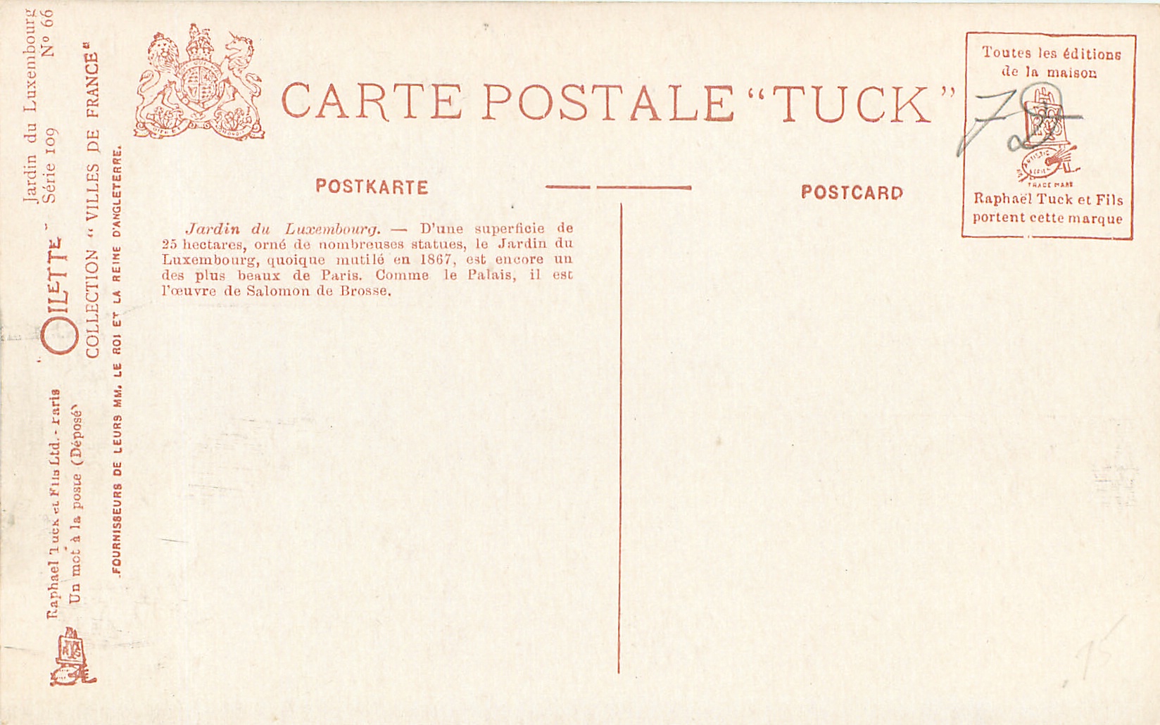 PARIS, JARDIN DU LUXEMBOURG, COLLECTION VILLES DE FRANCE 109 (inset 61-66)