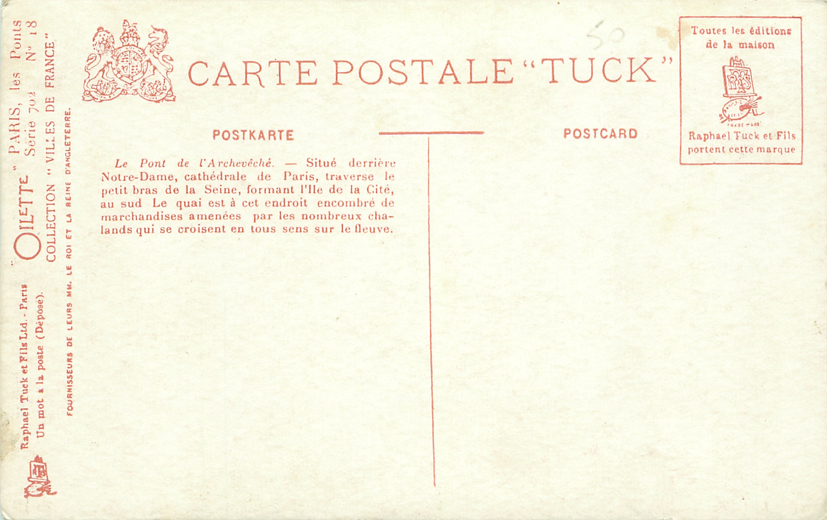 OILETTE, UN MOT A LA POSTE (DEPOSE), COLLECTION VILLES DE FRANCE, 3 backs, most of same images come in SERIE 702 without inset numbers, same images English backs OILETTE WIDE-WIDE-WORLD 7379 & 7380 PARIS BRIDGES I & II