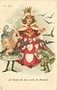 LA BONNE FEE DES CONTES DE PERRAULT queen of hearts, frog & egg person with jackdaws flying out of a pie
