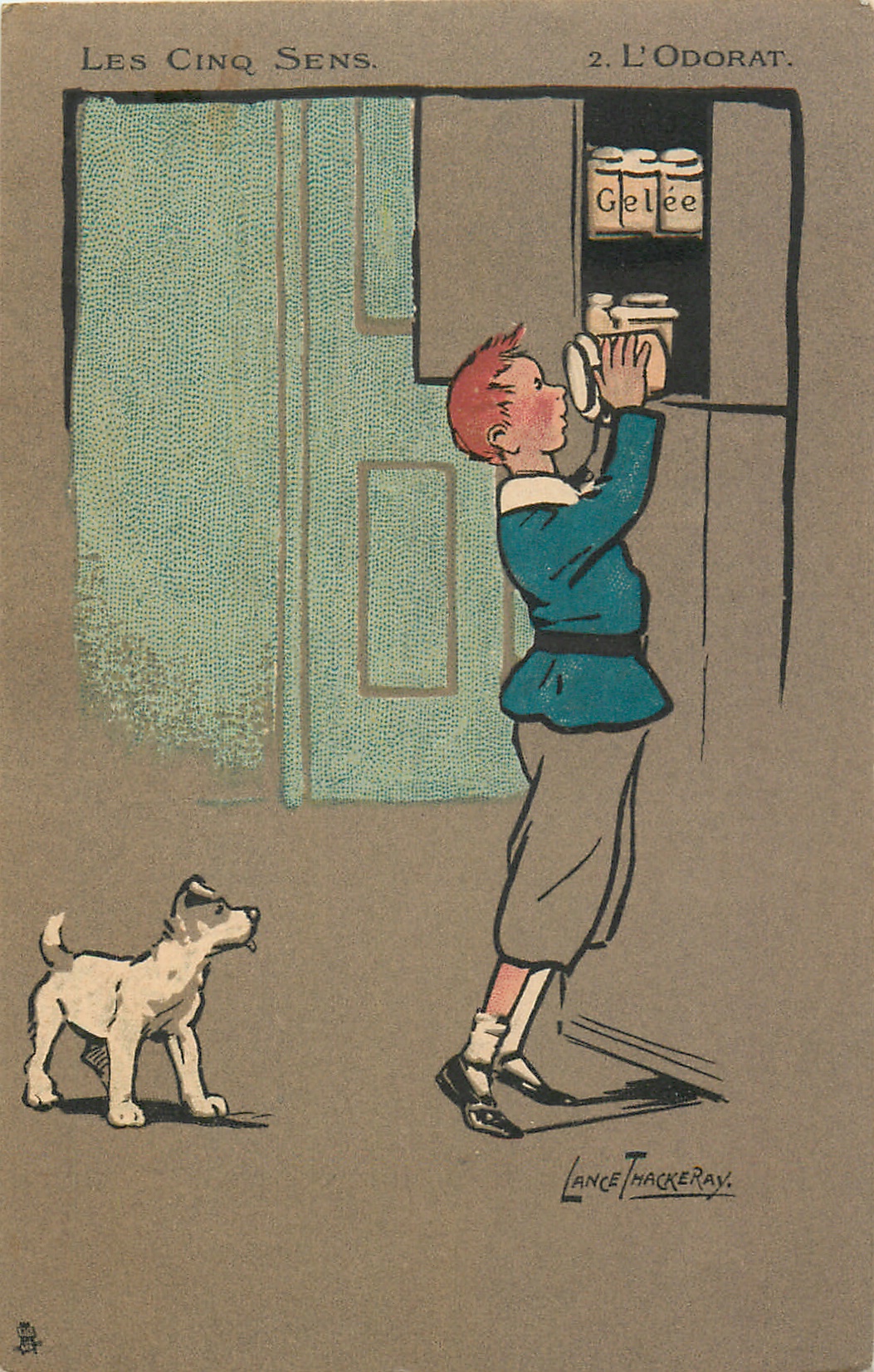 UN MOT A LA POSTE (DEPOSE), same image, English back 1329 HUMOROUS, THE FIVE SENSES, come unnumbered