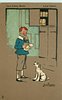 LE GOUT boy stands with jar of jam licking his finger, dog begs