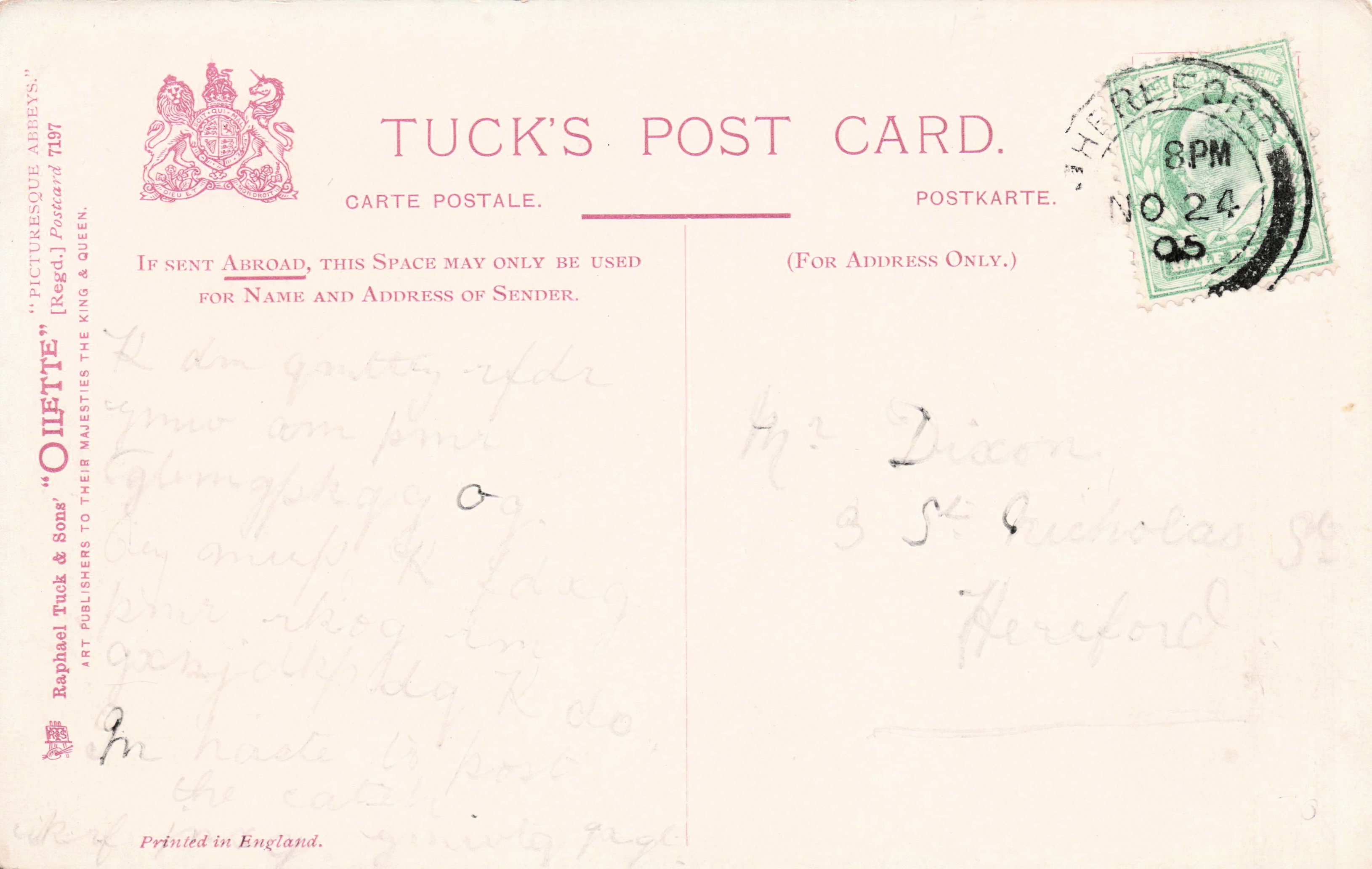 OILETTE, PRINTED IN ENGLAND, 4 backs, listed in 1908/1909 & 1911/1912 Postcard Catalogue, same images and titles 3274, 6551, 8561, come beaded