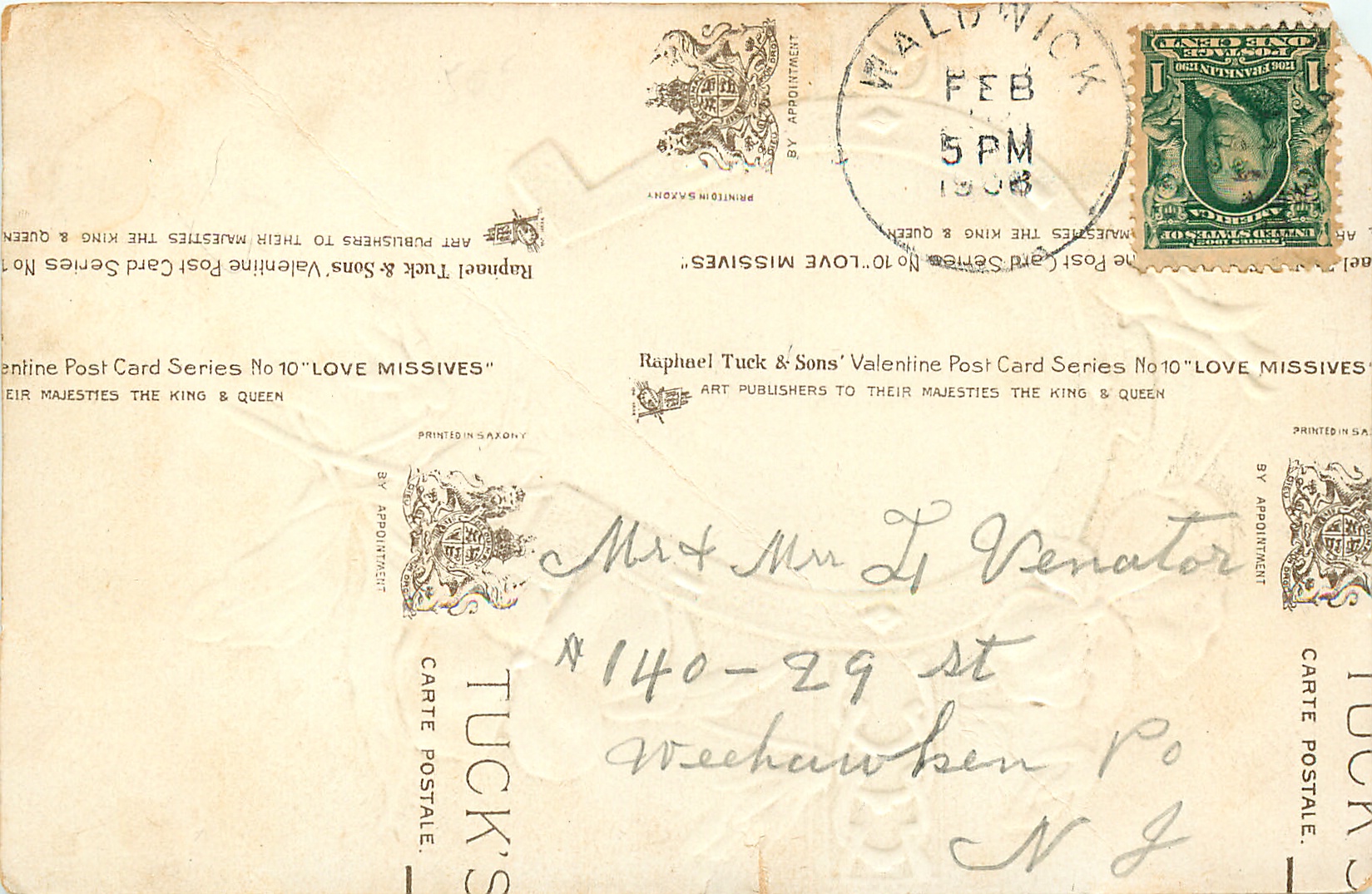 LOVE MISSIVES, VALENTINE, tuck printing error