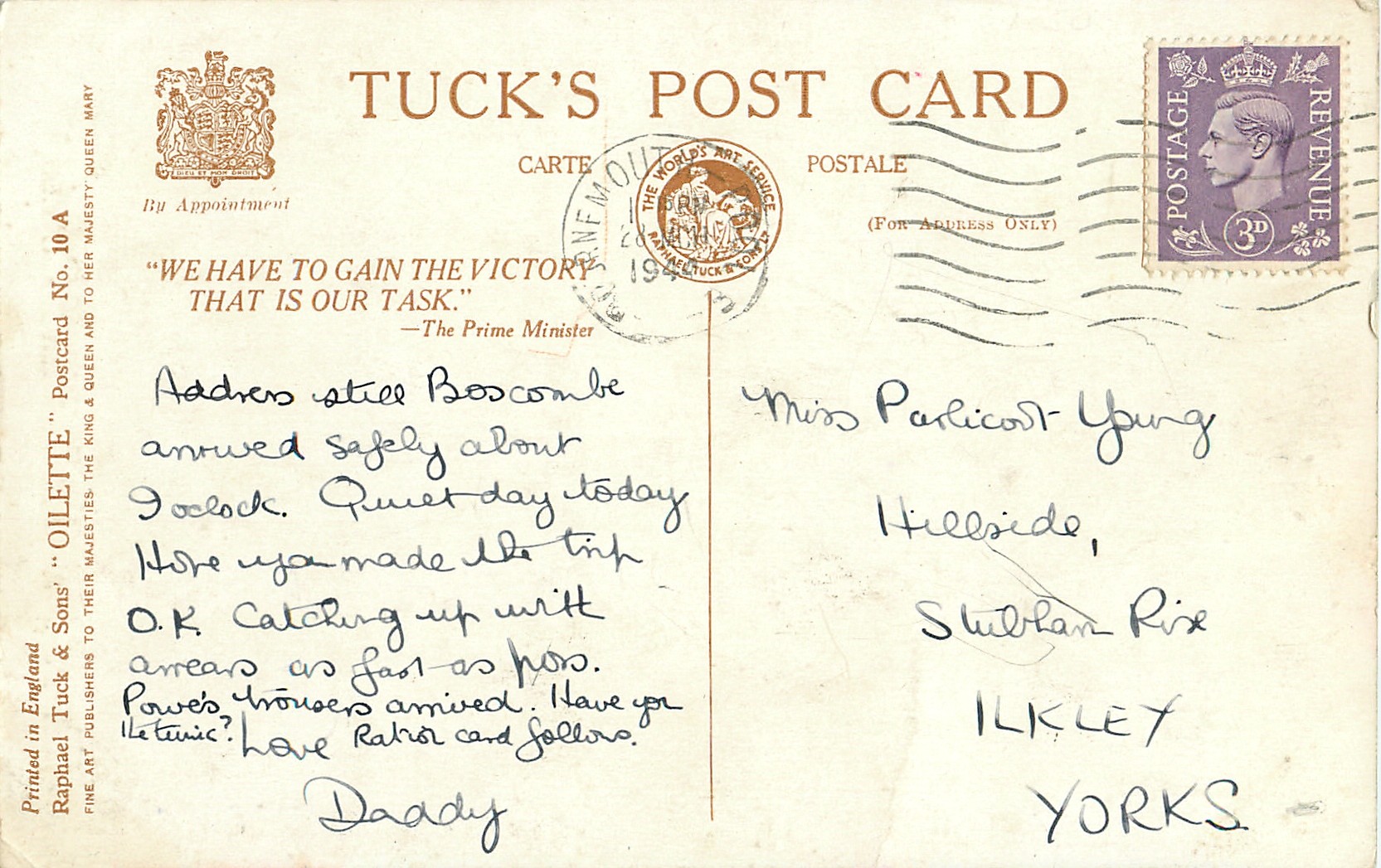 OILETTE, PRINTED IN ENGLAND, patriotic slogan on back