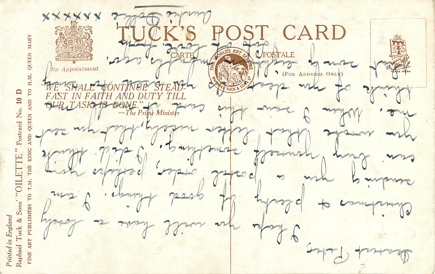 OILETTE, PRINTED IN ENGLAND, patriotic slogan on back