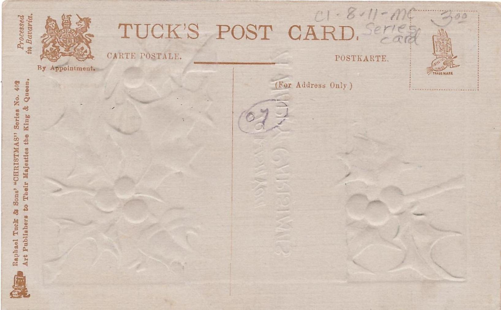 TO WISH YOU A HAPPY CHRISTMAS in gilt with embossed holly above and below