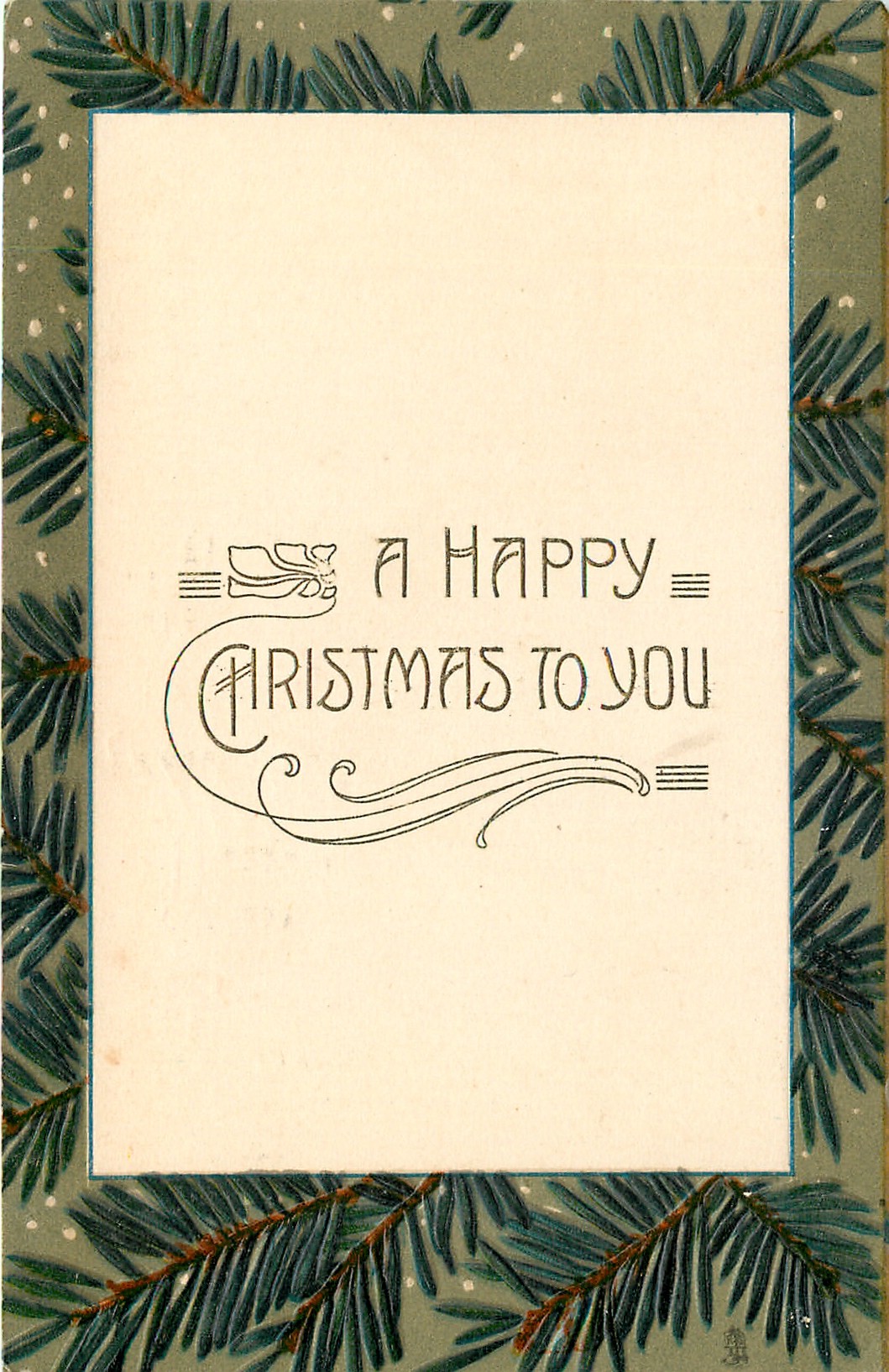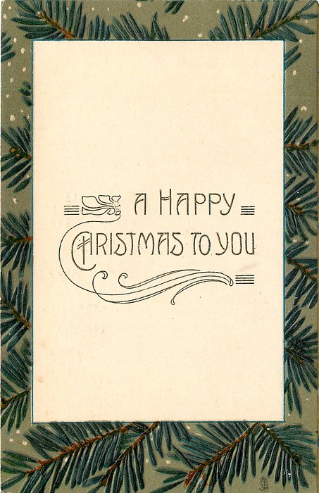 A HAPPY CHRISTMAS TO YOU in large empty inset, evergreen borders