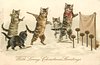 WITH LOVING CHRISTMAS GREETINGS three cats & two kittens throw sticks at coconuts