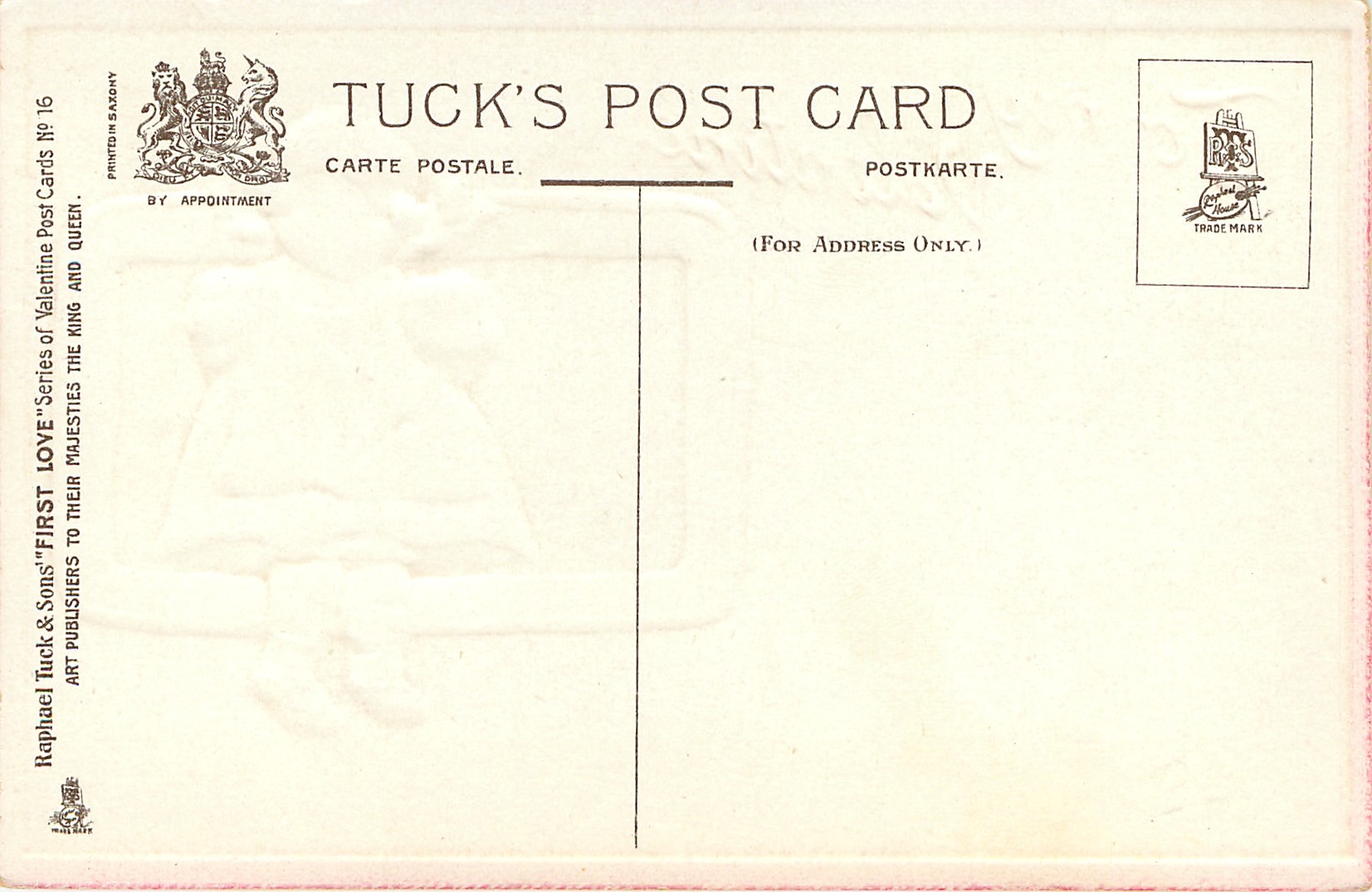 gilt embossed, PRINTED IN SAXONY, narrow red borders