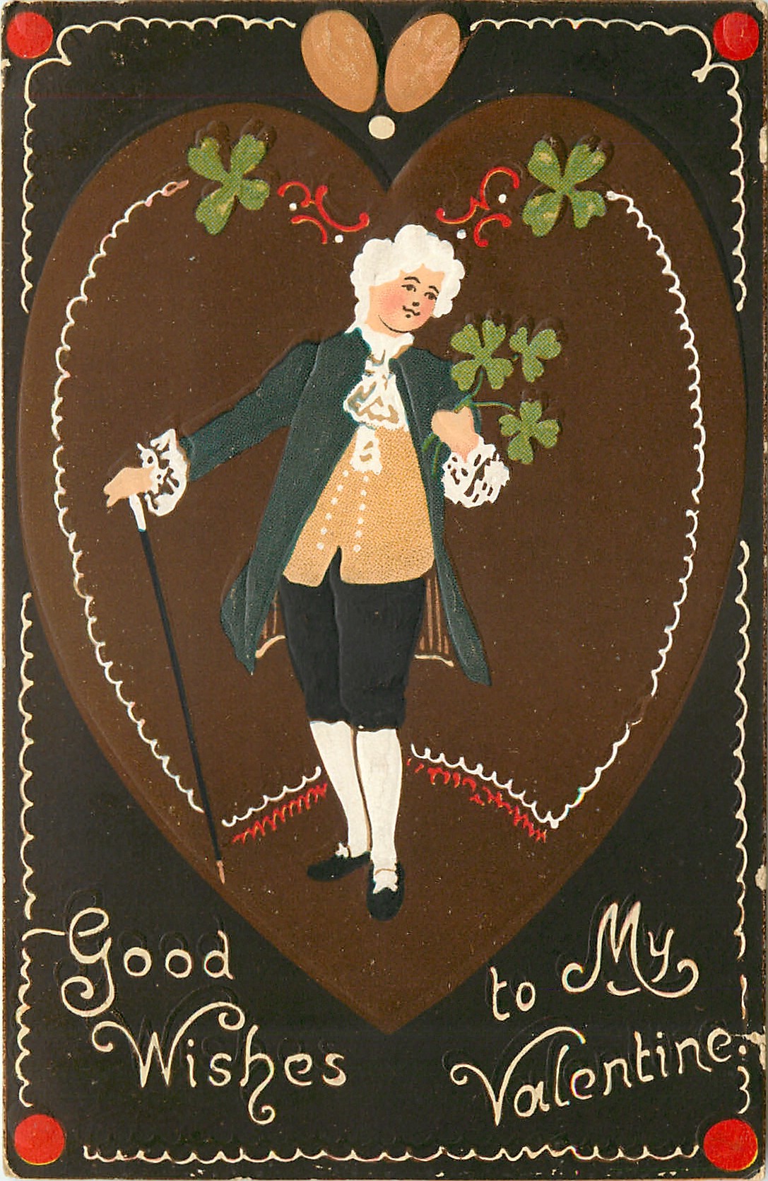 GOOD WISHES TO MY VALENTINE man in old style dress, ornate decorations