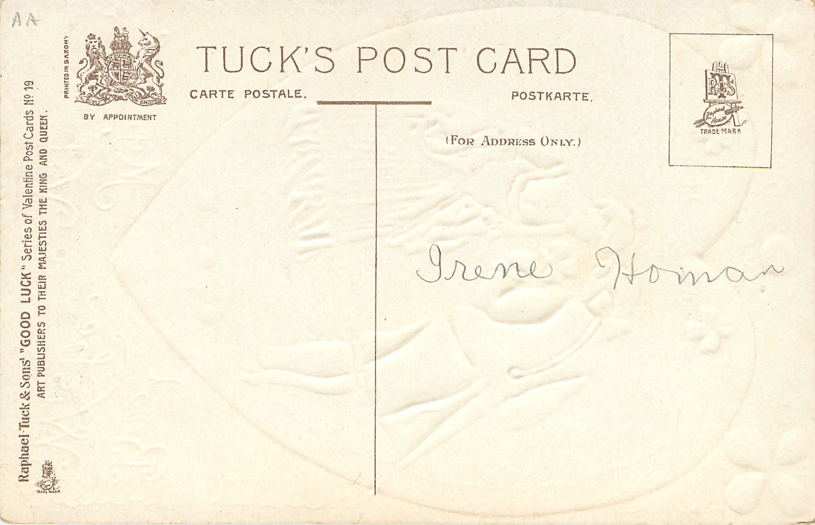 embossed, PRINTED IN SAXONY