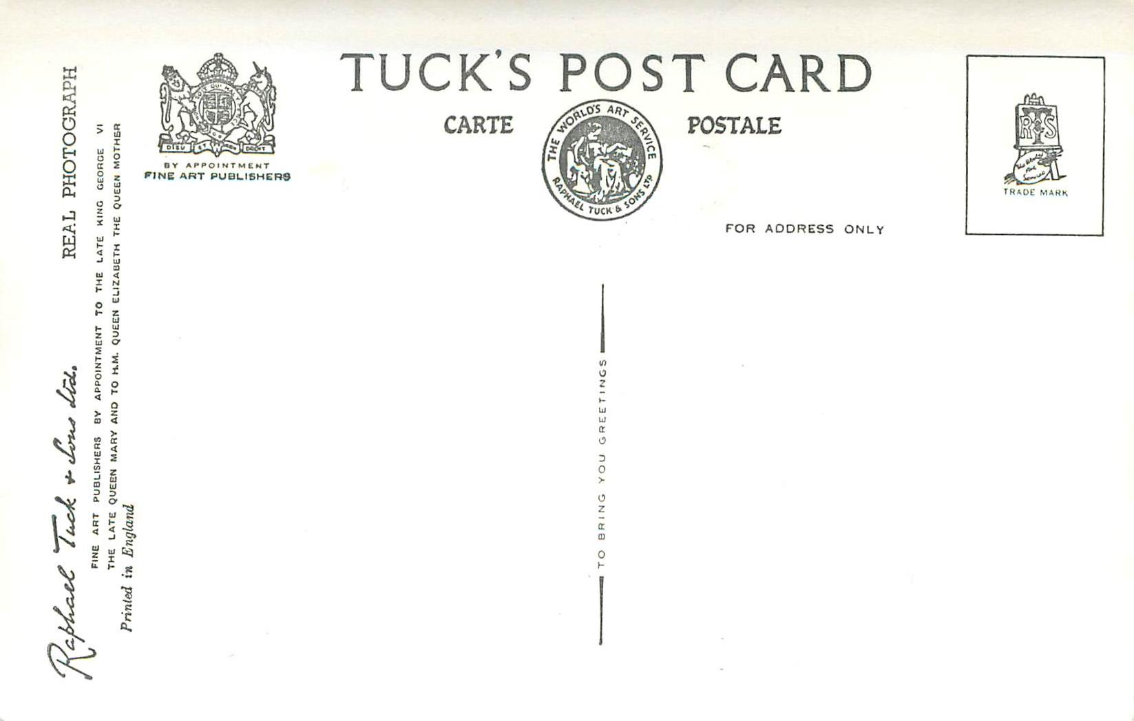 PRINTED IN ENGLAND, REAL PHOTOGRAPH, 2 backs, come with TO BRING YOU GREETINGS or GREETINGS TO YOU