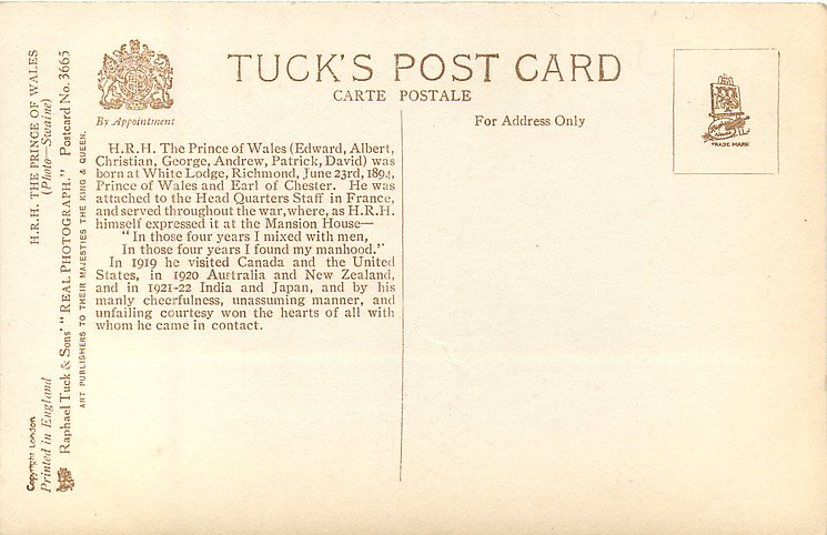 REAL PHOTOGRAPH, PRINTED IN ENGLAND, COPYRIGHT LONDON, listed in 1930 POSTCARD Catalogue, 4 backs