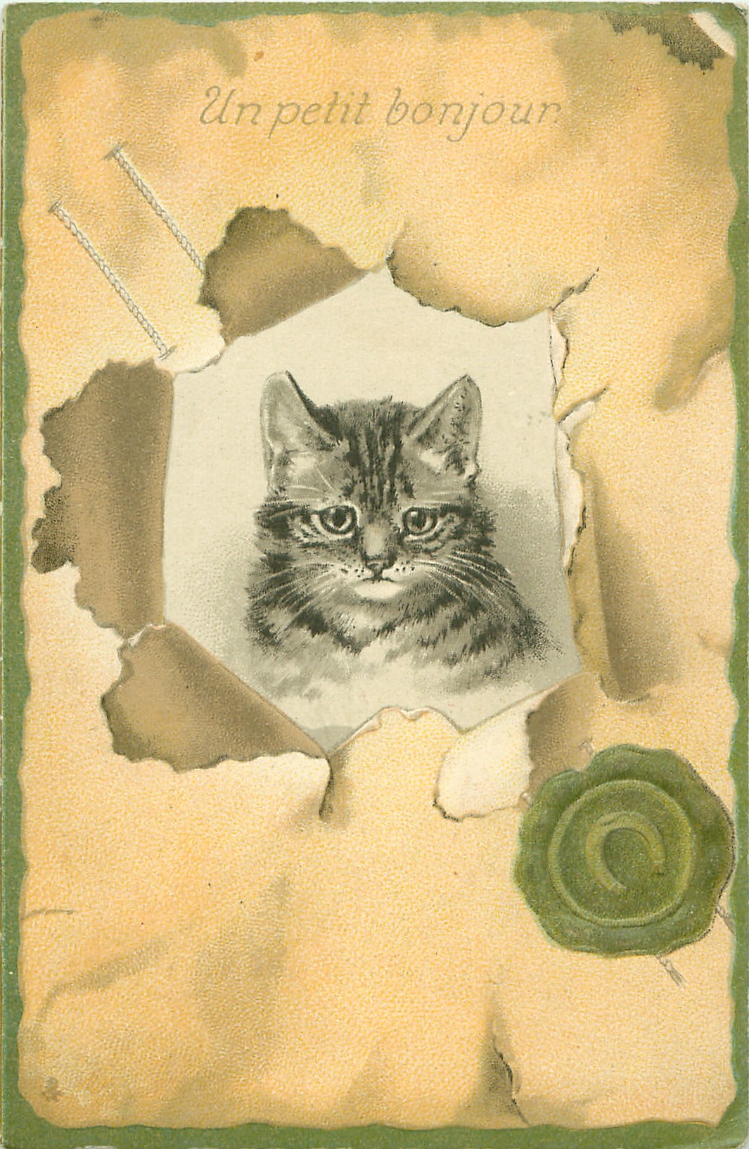 UN PETIT BONJOUR inset of cat facing front