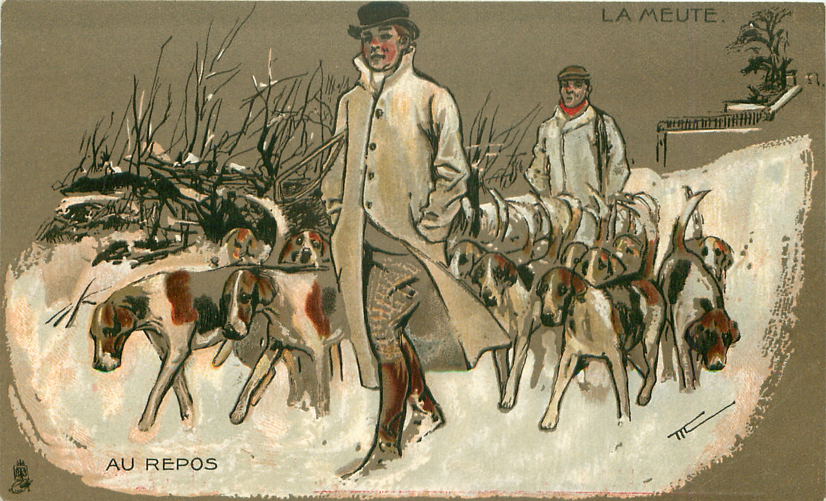 UN MOT A LA POSTE (DEPOSE), same image English back 1303 IMPRESSIONIST TALLY HO!, 594 CALENDAR come opt. in red on back SI VOUS BIEN DETACHER, EMPLOYEZ "LE JALAPA"