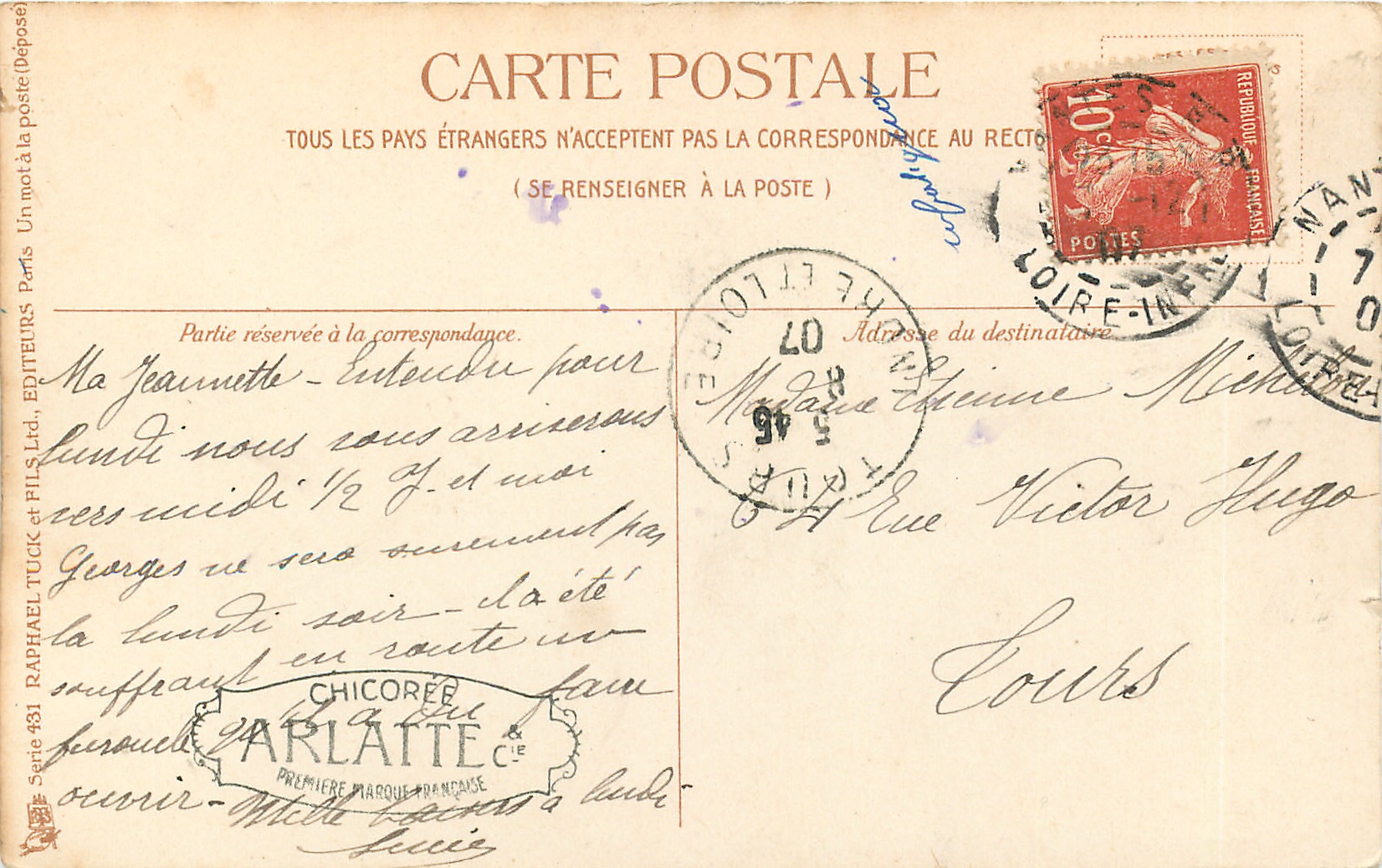UN MOT A LA POSTE (DEPOSE), same image, English back & card title 1298 HUMOROUS FRIDAY, come CHICOREE ARLATTE on back, similar images used for non-postcard Greetings