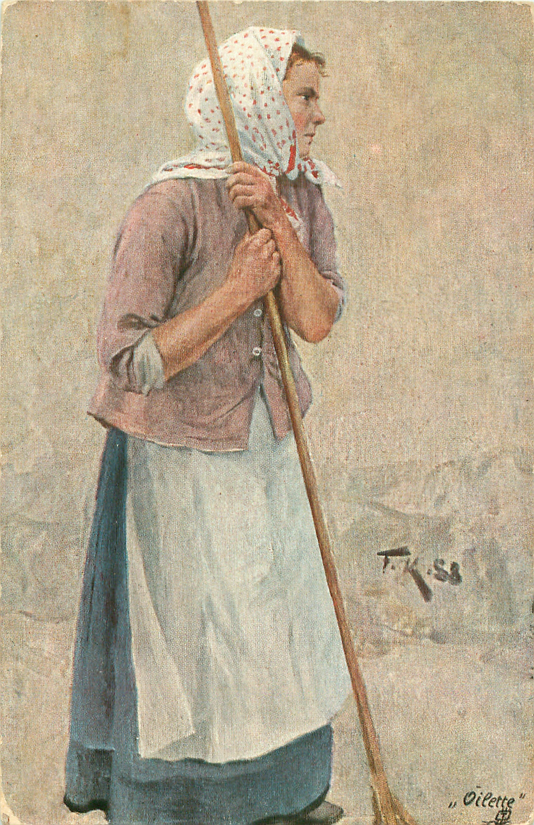 OILETTE, UN MOT A LA POSTE (DEPOSE), suffix P, same images German backs 1201 B KOLLEKTION "DEUTSCHER MEISTER" SERIE II, artist VON PROF. FR. KALLMORGEN on German backed cards