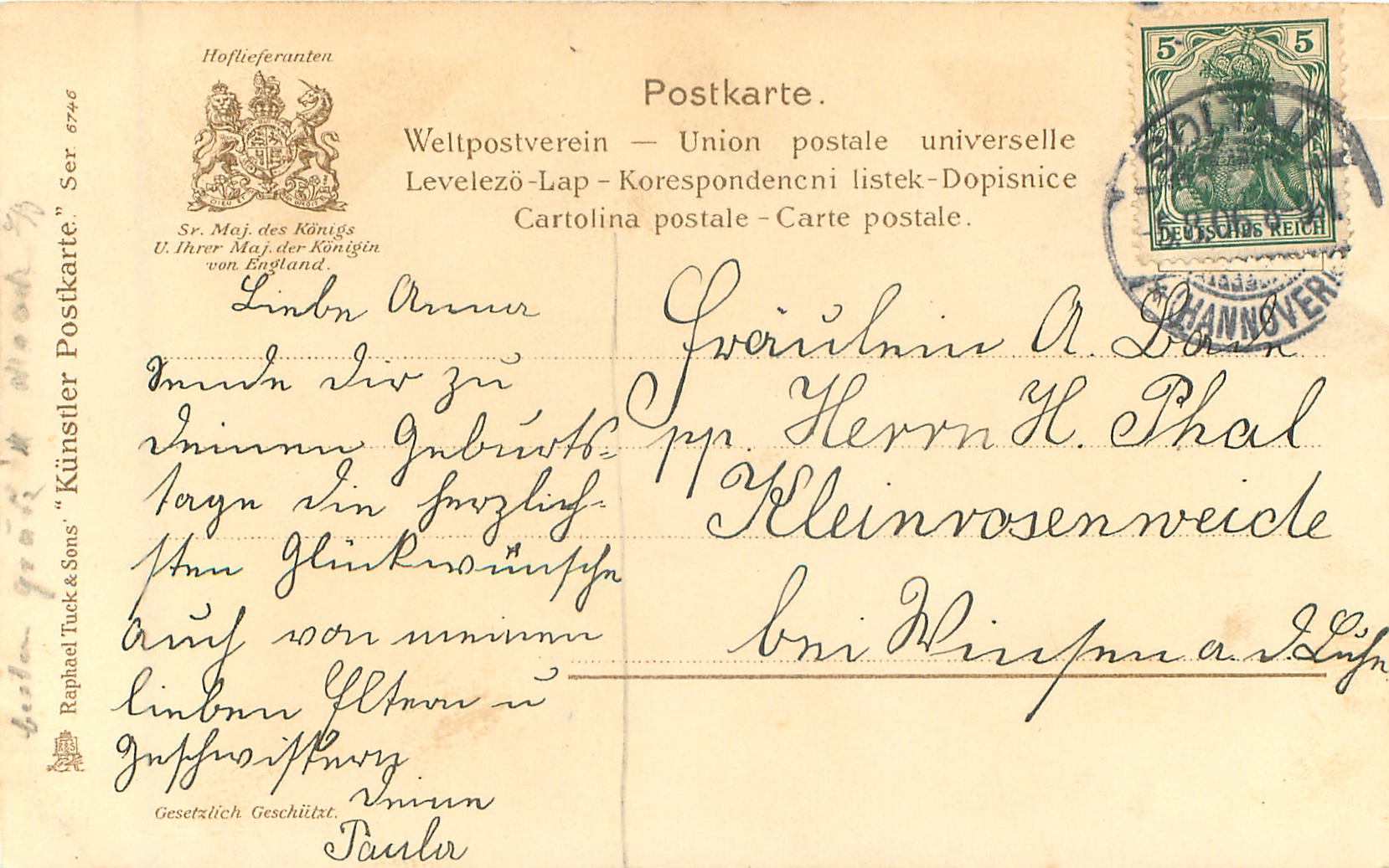 KUNSTLER POSTKARTE, u/b, GESETZLICH GESCHUTZT, same image English back ART 6746