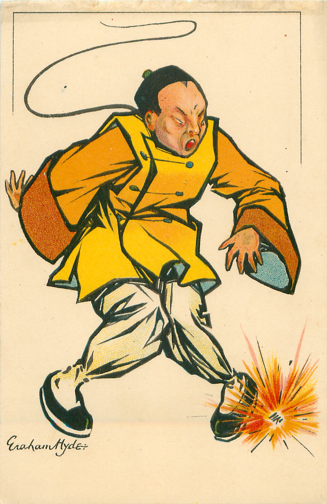 Chinaman startled by exploding firework