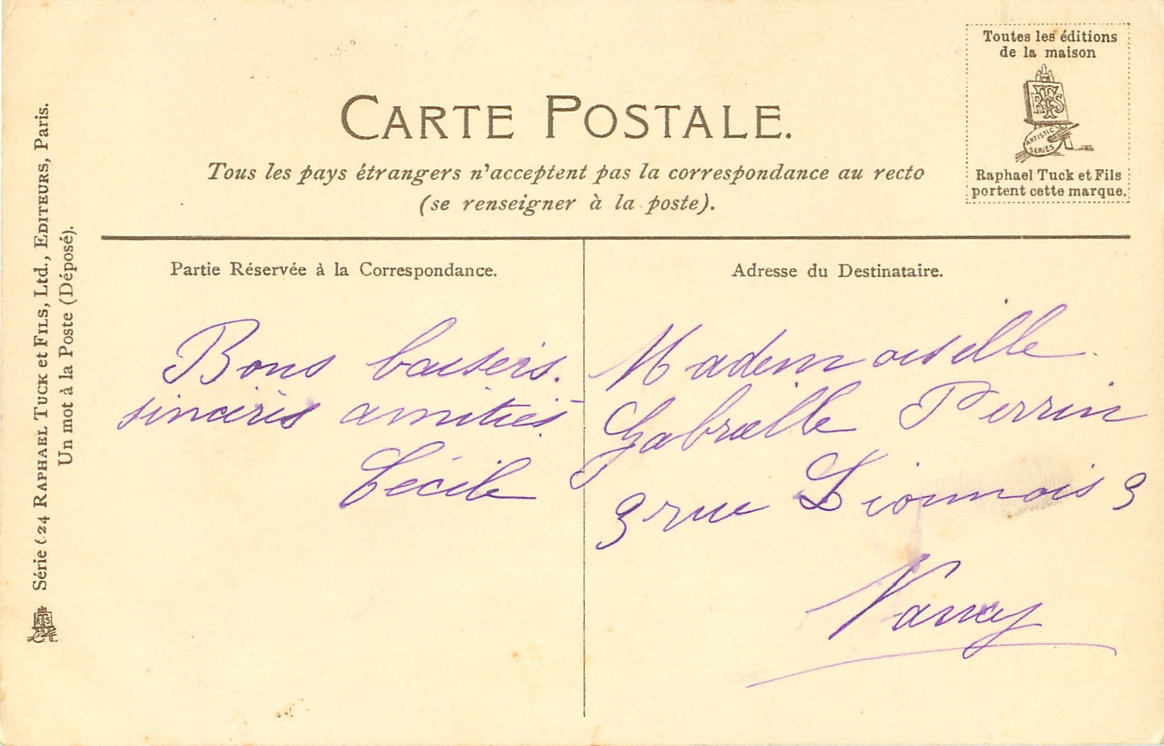 UN MOT A LA POSTE (DEPOSE), same image English back ART 6750, come with CHICOREE ARLATTE & CIE PREMIUM MARQUE FRANCAIS advert. on back