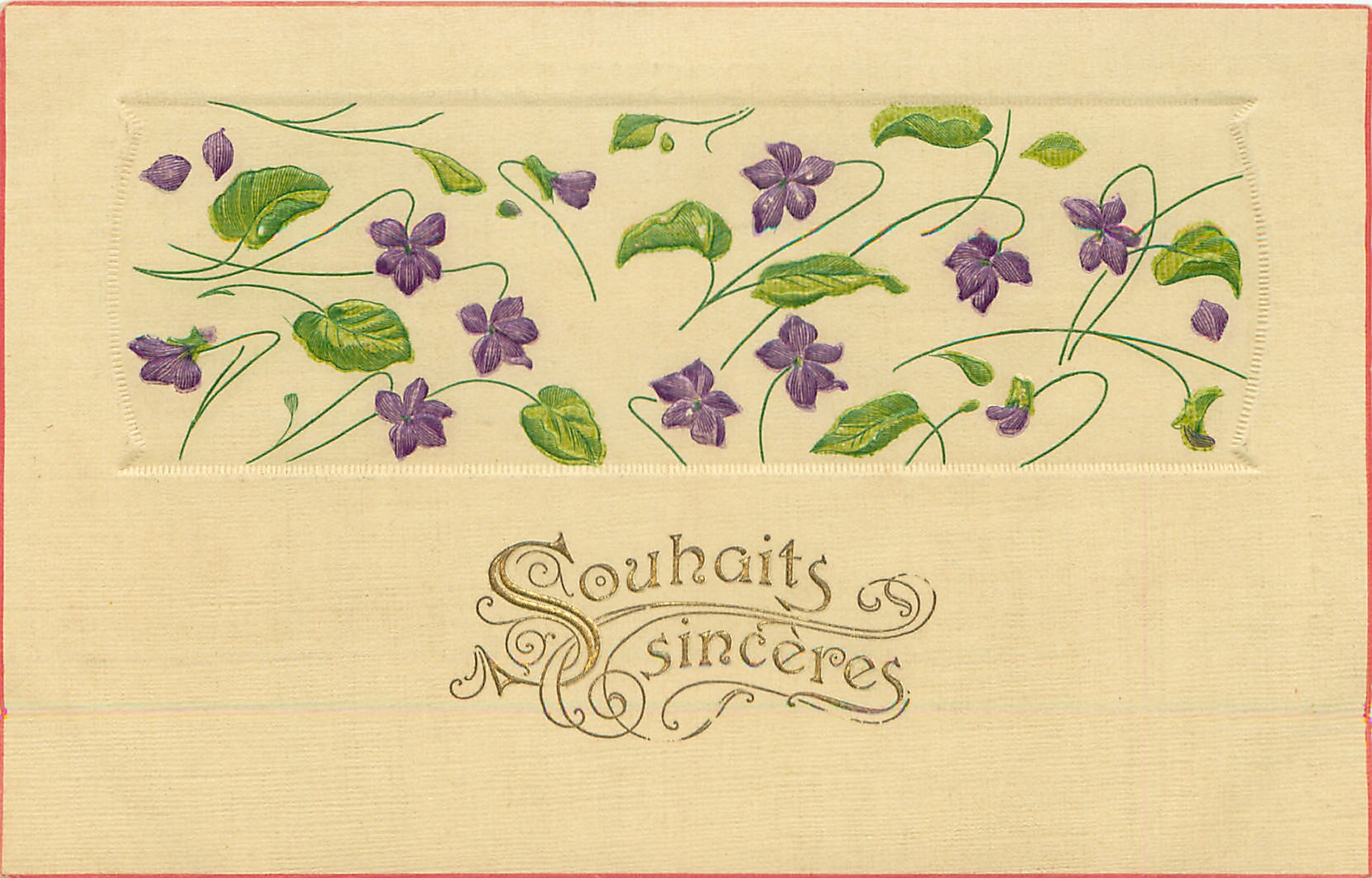 SOUHAITS SINCERES panel of violets & leaves above inscription