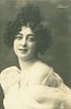 head & shoulder study, cape off her left shoulder, faces left, looks front