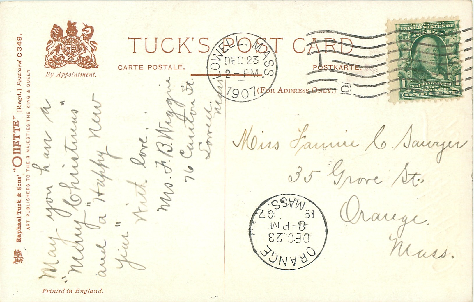 OILETTE PRINTED IN ENGLAND greetings overprint in gilt
