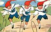 OILETTE, German back but English title on front, same image, English back OILETTE 9102 BOYS AND GIRLS COME OUT TO PLAY, French back SERIE 736