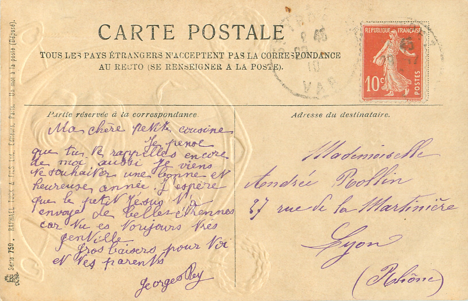 UN MOT A LA POSTE, (DEPOSE), embossed orange, green & white background, head & shoulders of classic beauty, come with cream or pale grey background