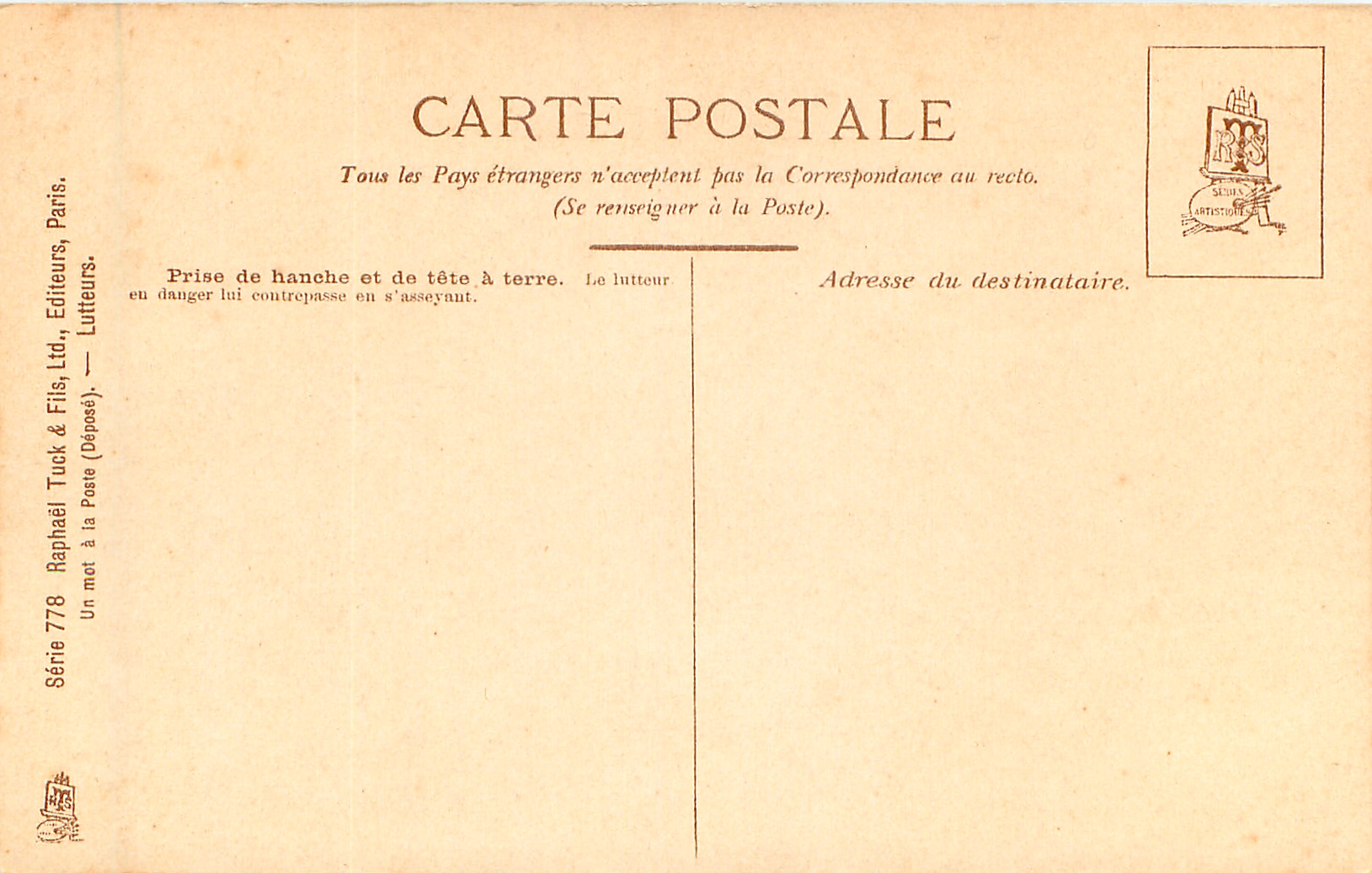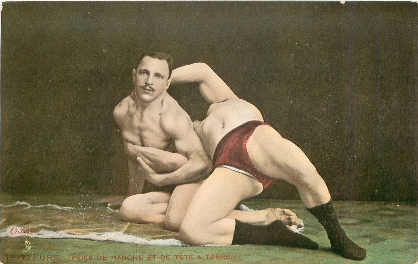 OILETTE (on front) UN MOT A LA POSTE, (DEPOSE), same image, English back 4490 WRESTLING, German back RINGKAMPFER 360B
