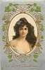 A HAPPY CHRISTMAS Gladys, oval panel showing Asti head (Rosalind), ivy nouveau style decorations around